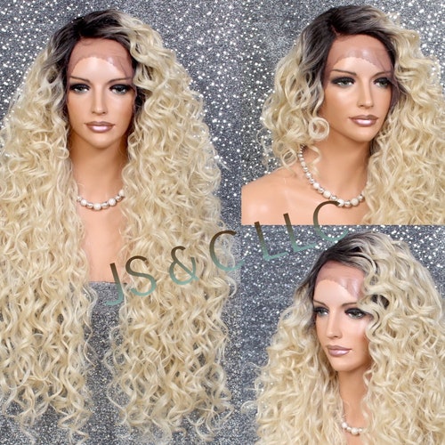 On Sale Long Kinky Curly Lace Front Wig Ombre Wig Curly Etsy Uk